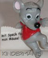 na koberci nápis "Mit Speck fängt man Mäuse"